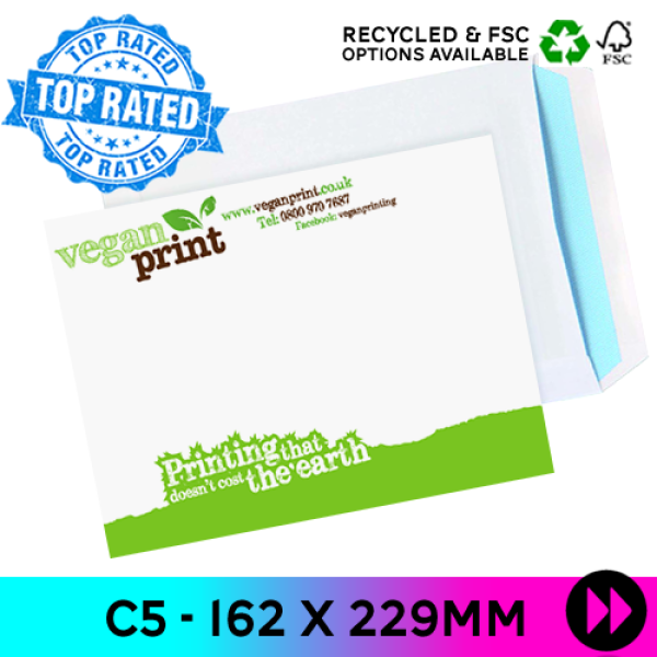 | * Please Choose Your C5 Envelope Type | This is a MANDATORY field and must be filled in. This envelope you have chosen to be printed is a standard sized C5 162 x 229mm envelope, also know as postcard sized and as 1/2 the size a sheet of A4 paper. 162mm up the sides and 229mm across the bottom. This envelope is also known as a wallet envelope, which means the flap runs across the top, also known as the long edge. The types of sealing we offer are gummed, self seal and peel and seal. A gummed envelope has to be wetted to stick, a self seal envelope simply sticks when pressed down and the peel and seal option offers a paper strip that you peel away to reveal a sticky strip underneath. The thickness and paper quality is graded using GSM. The thinnest paper being 80gsm which we recommend for big bulk trade mail shots, through to 90gsm the standard bearer for most business's with budgetary requirements, up to the 120gsm envelope which is a high quality premium paper. With more choice of this C5 envelope types than anywhere else in the UK today, we have carefully selected the right types of C5 envelope here for your printing needs. You get to choose from the following types, in price order: Manilla Gummed With and Without Window 80gsm and 90gsm White Gummed With and Without Window 80gsm and 90gsm Manilla Self Seal Without Window 90gsm White Self Seal With and Without Window 90gsm White Peel and Seal 120gsm The choice is yours to make. |